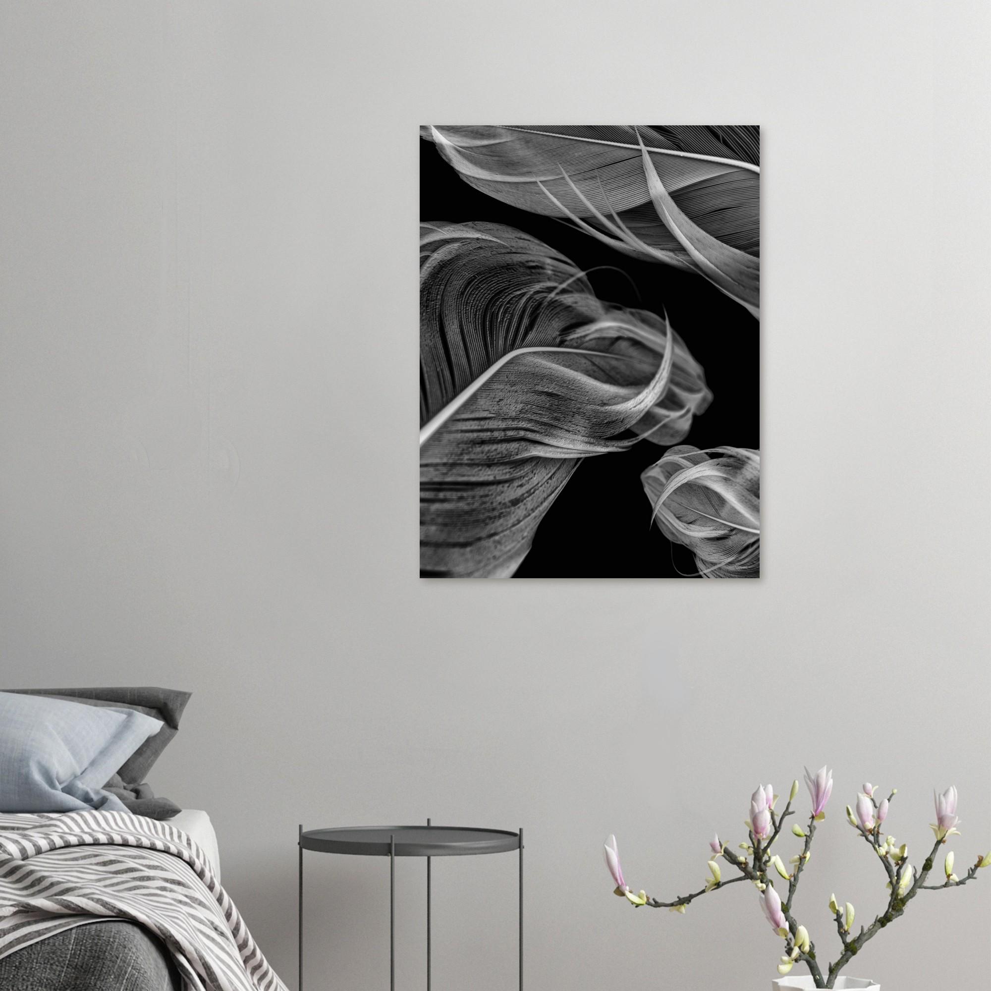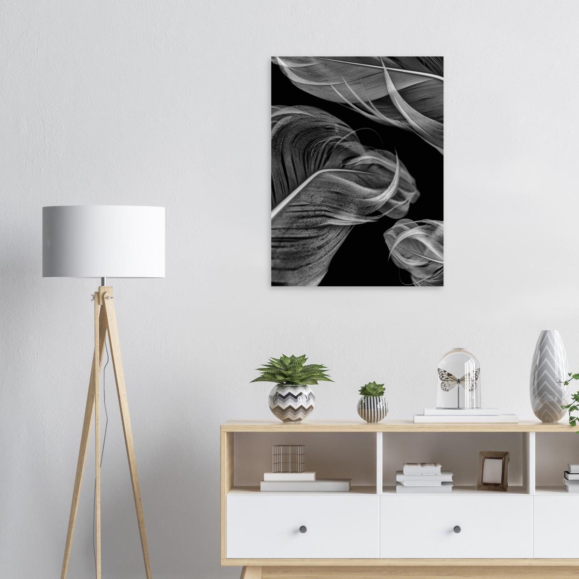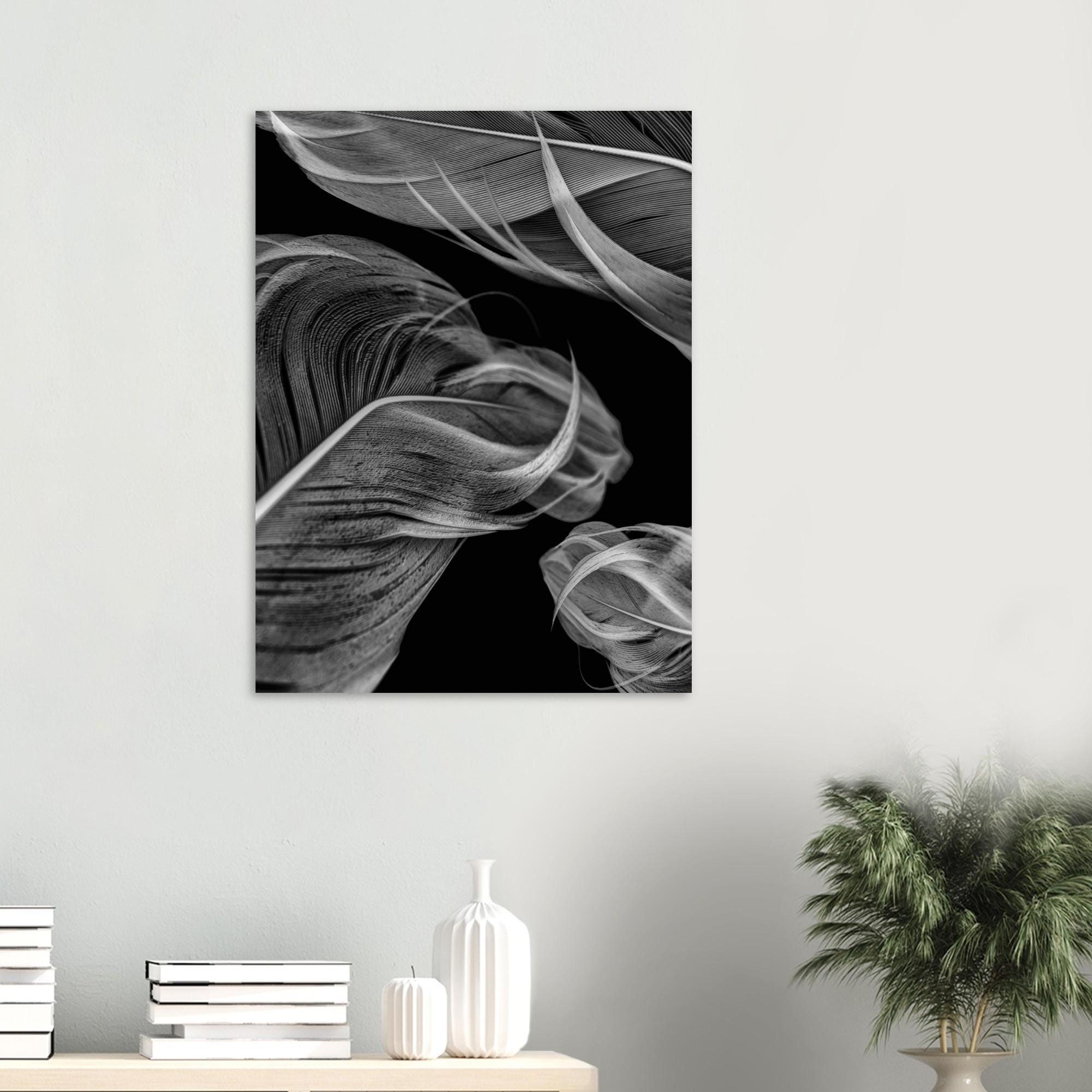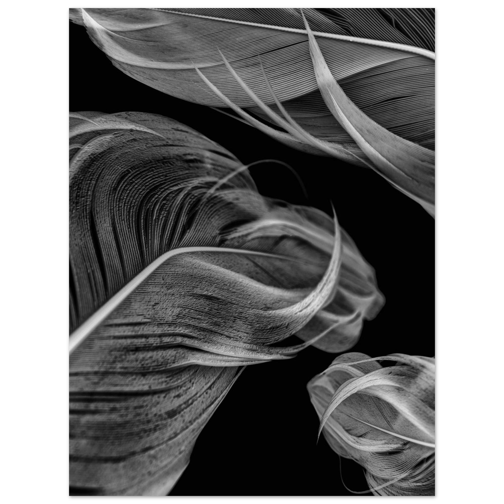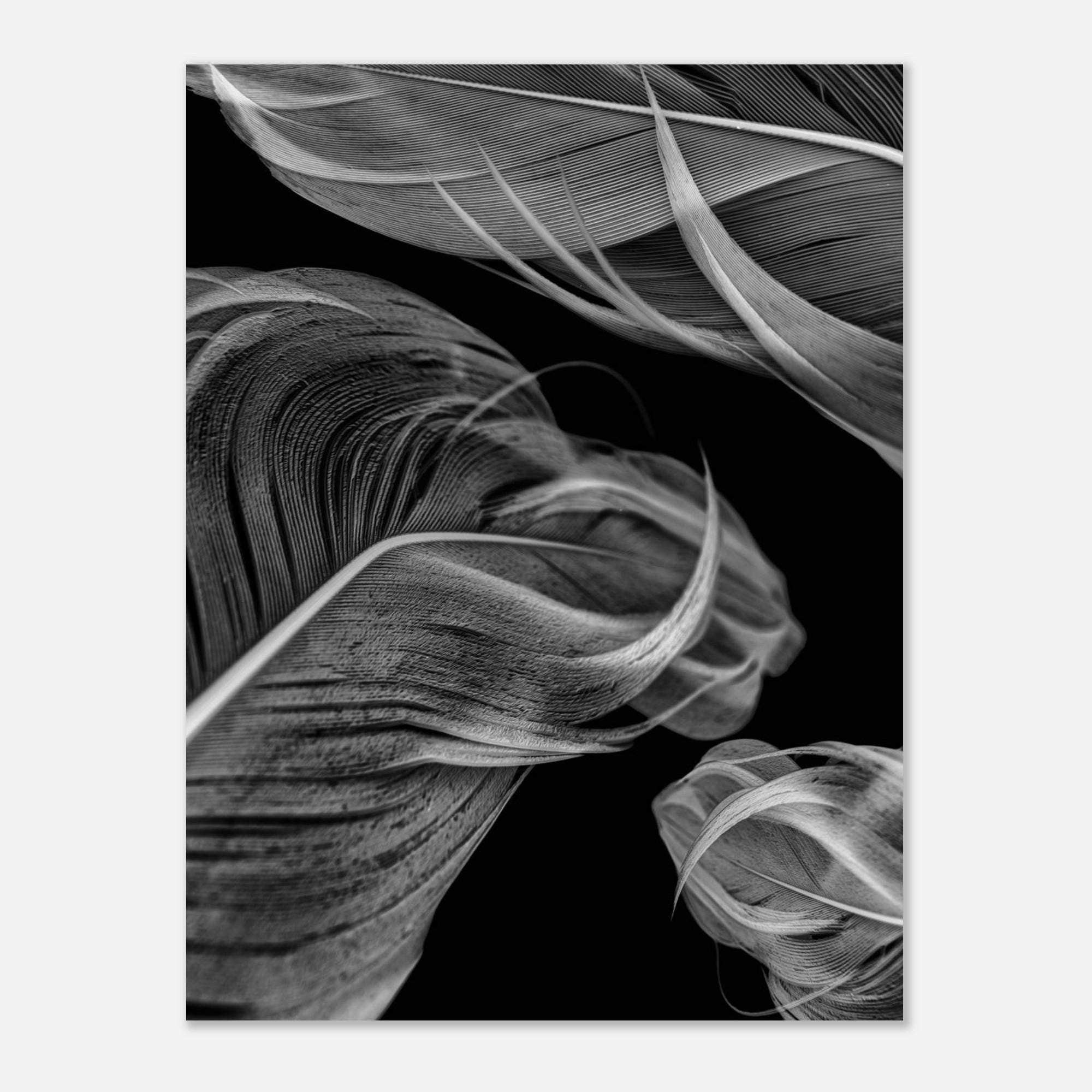 Elegance in detail: This high-quality art print poster features a captivating black and white macro photograph of delicate feathers. The finest structures, timeless aesthetics, and modern minimalism combine to create a striking visual effect.