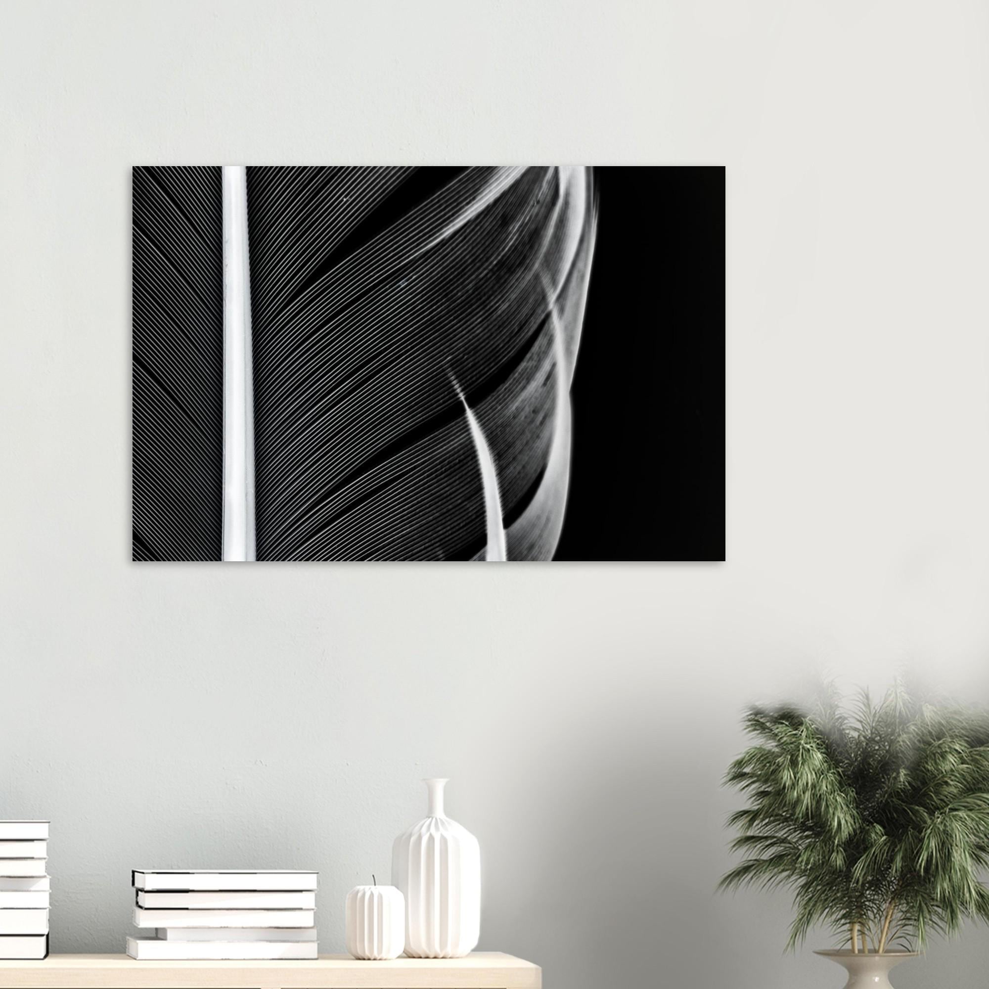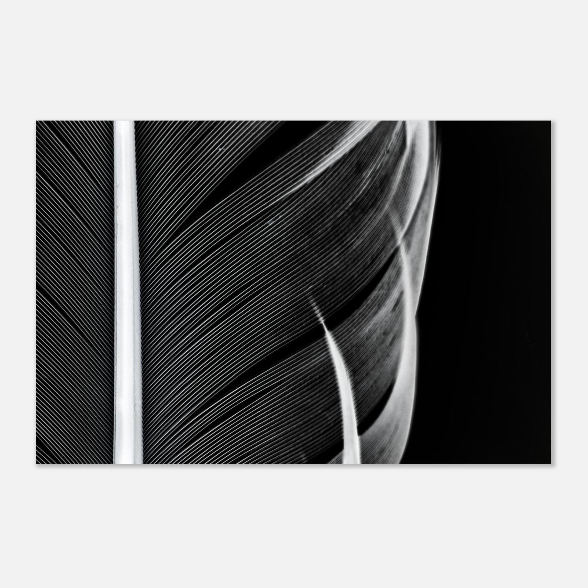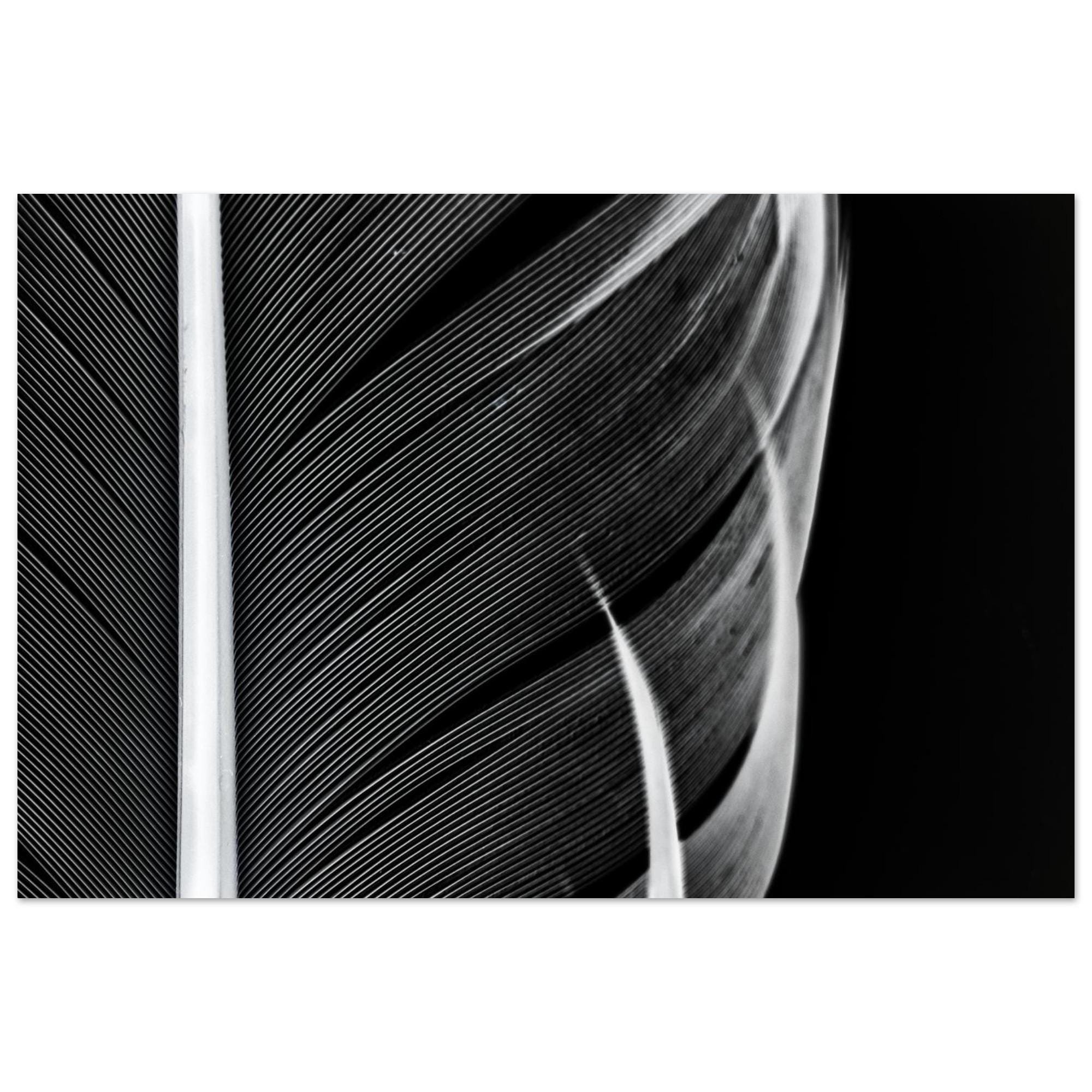 Elegance in detail: This high-quality art print poster features a captivating black and white macro photograph of delicate feathers. The finest structures, timeless aesthetics, and modern minimalism combine to create a striking visual effect.