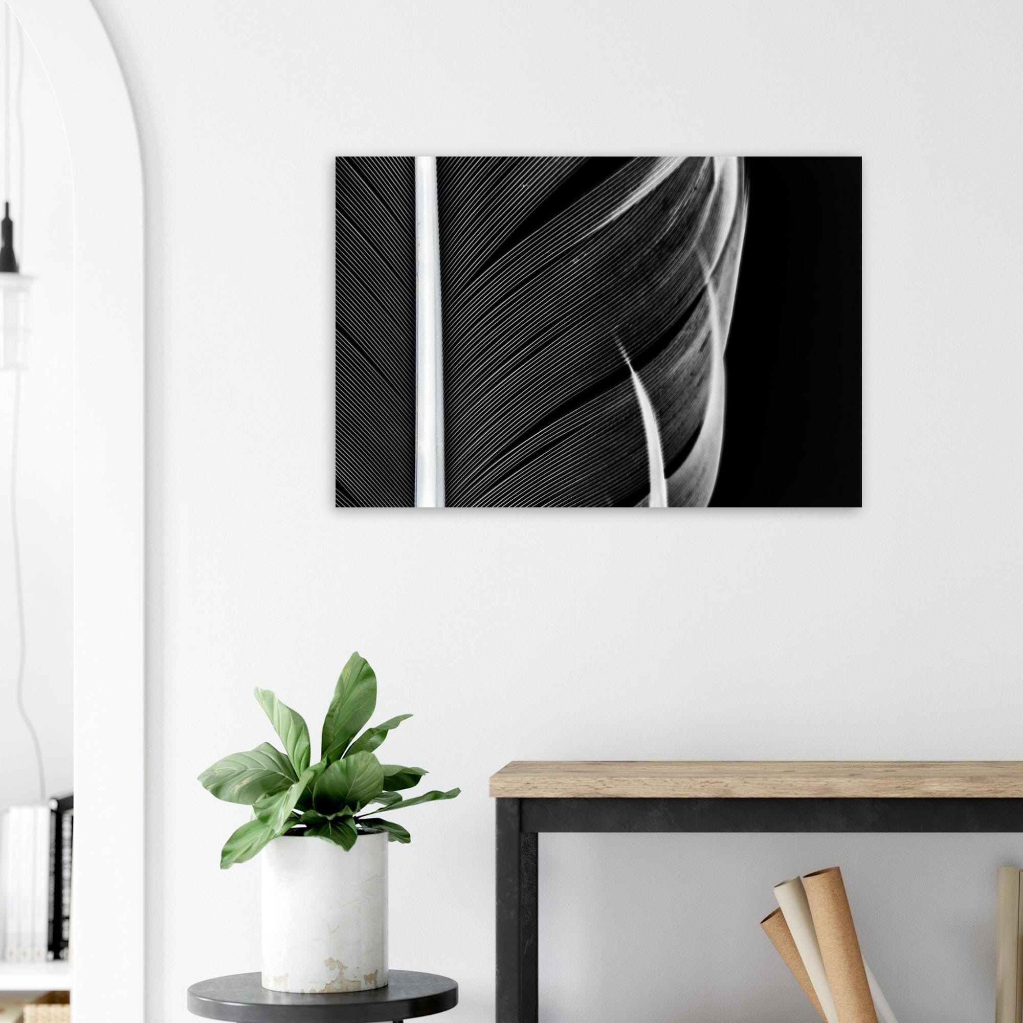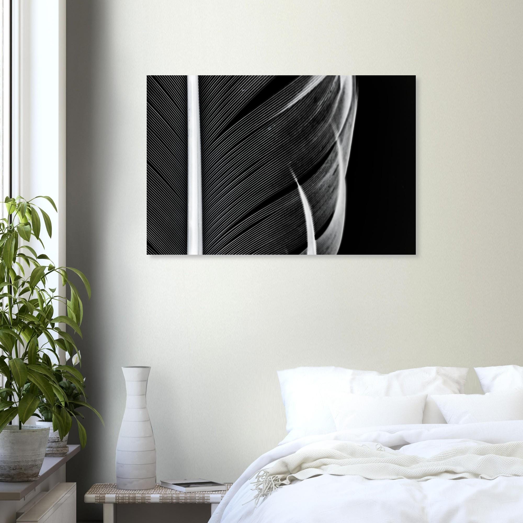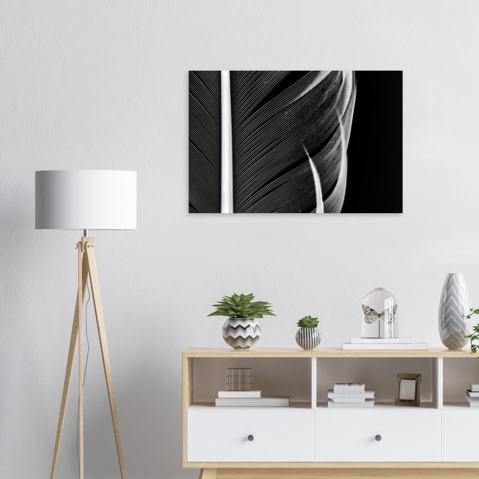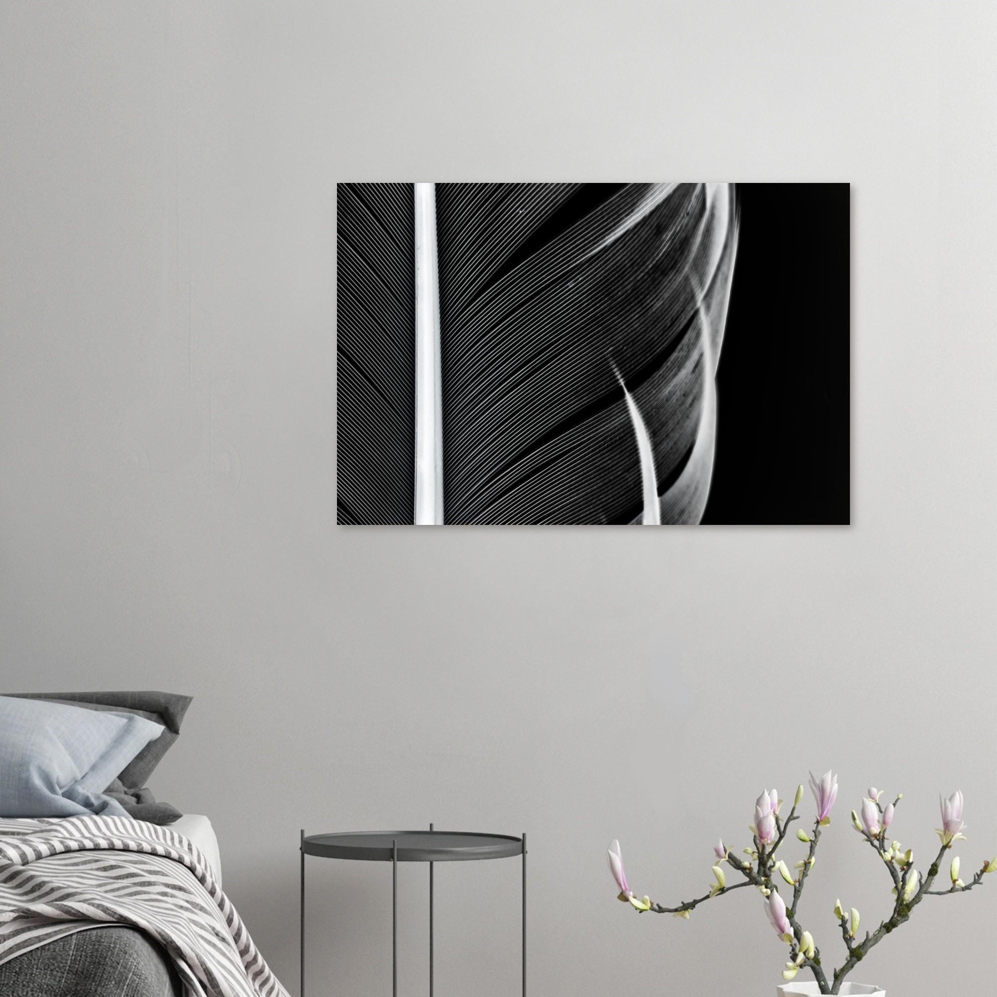 Elegance in detail: This high-quality art print poster features a captivating black and white macro photograph of delicate feathers. The finest structures, timeless aesthetics, and modern minimalism combine to create a striking visual effect.